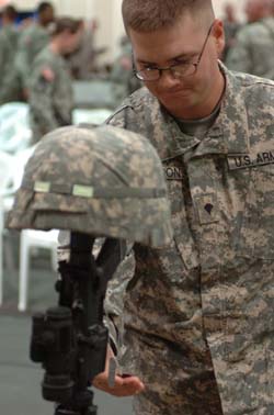 service for one of his fallen Soldiers, Spc. Adam Rosema, Company E,