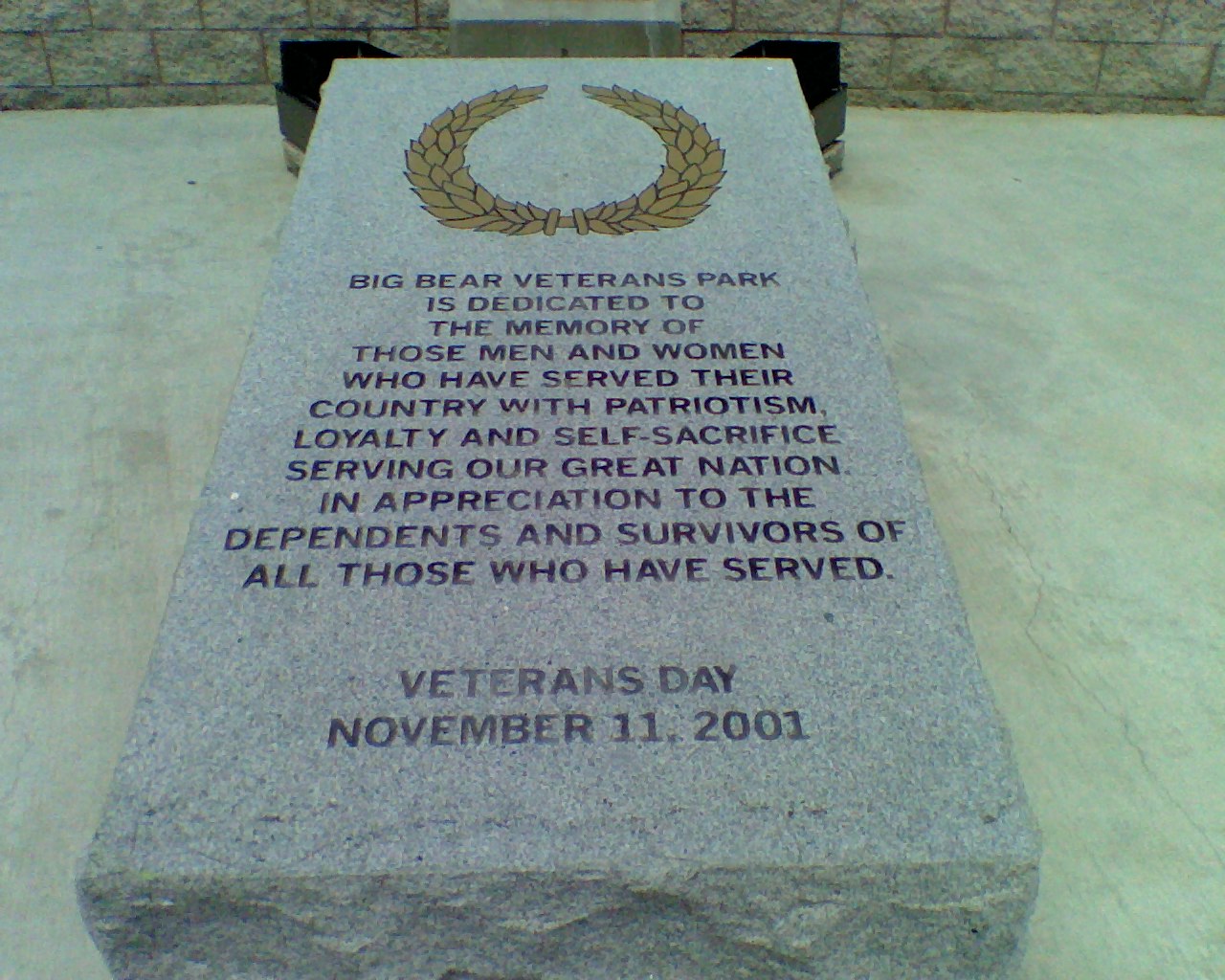 08-09-2008 Big Bear Memorial Park This plaque was placed on the memorial wall at Big Bear Lake's memorial park.